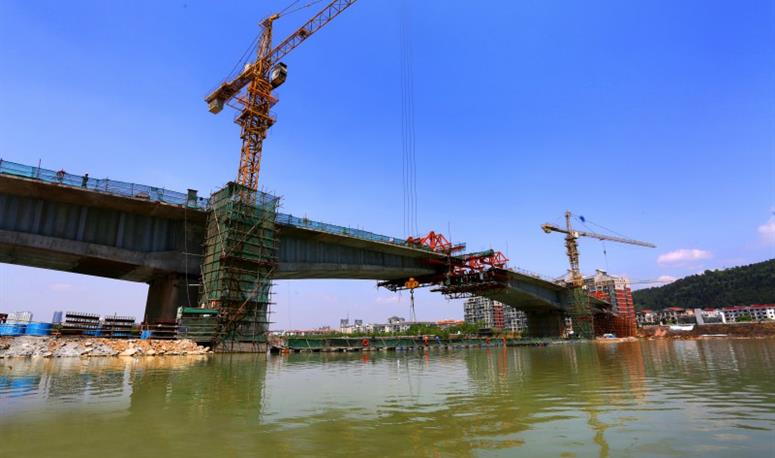 虹云橋連接桃花島和沈家壩片區(qū),為城南新區(qū)規(guī)劃的配套項(xiàng)目,起于桃花島,上跨涪江、芙蓉路,終點(diǎn)接綿鹽路,橋梁全長497米,其中主橋設(shè)計(jì)為83米+110米+83米三跨波形鋼腹板連續(xù)梁,橋梁寬度18米,設(shè)計(jì)行車時速20公里。項(xiàng)目建成后將加強(qiáng)城南片區(qū)與沈家壩片區(qū)的交通聯(lián)系,改善桃花島片區(qū)的出行條件,緩解涪江三橋的交通壓力。