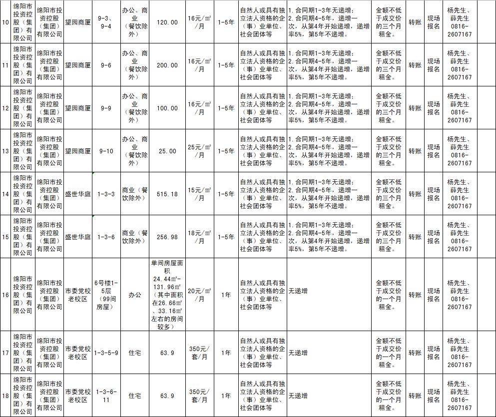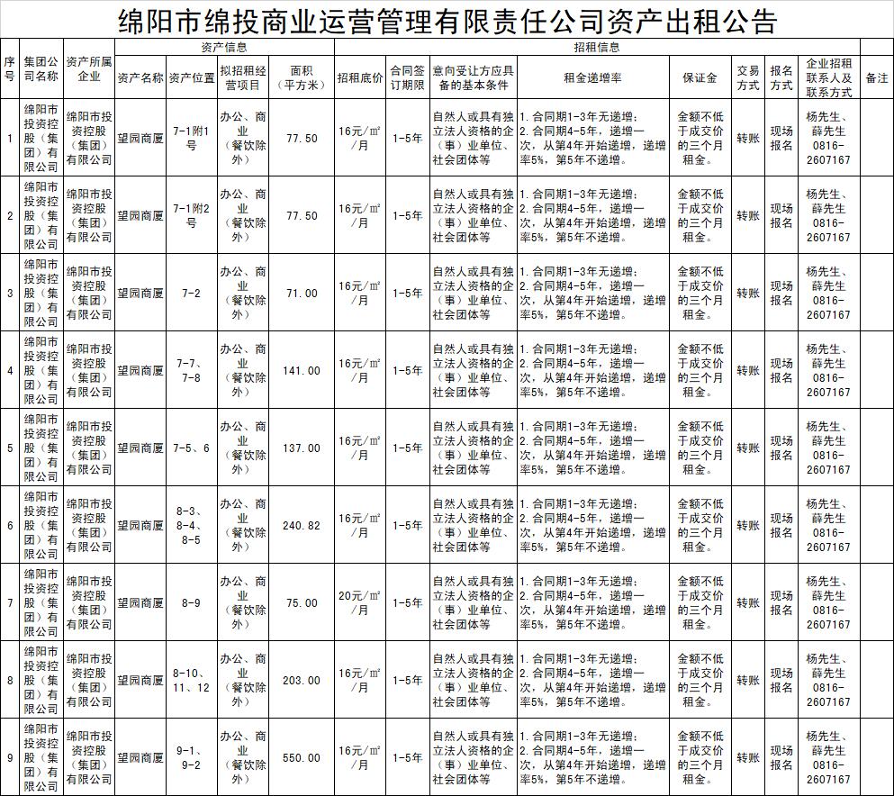 綿陽市綿投商業(yè)運(yùn)營管理有限責(zé)任公司資產(chǎn)出租公告