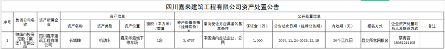 四川嘉來(lái)建筑工程有限公司資產(chǎn)處置公告