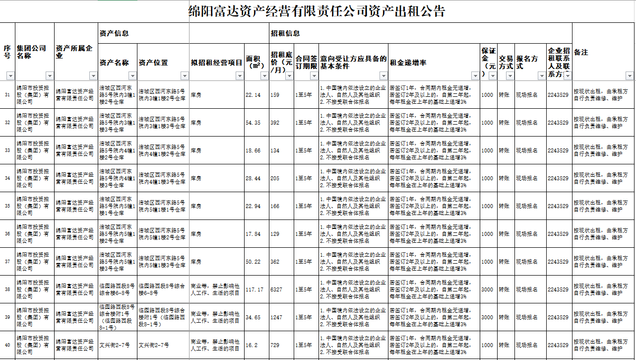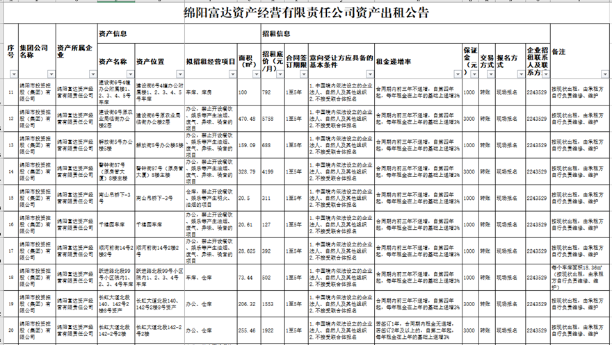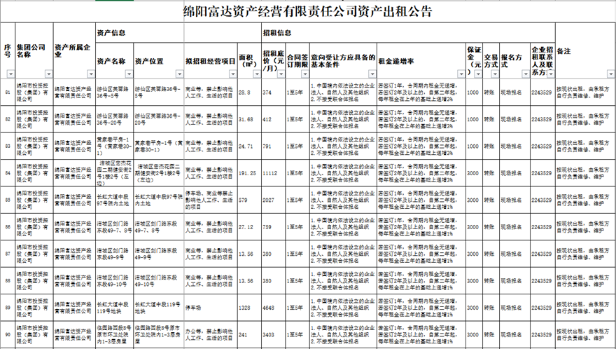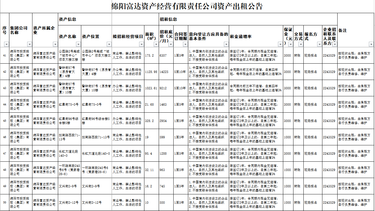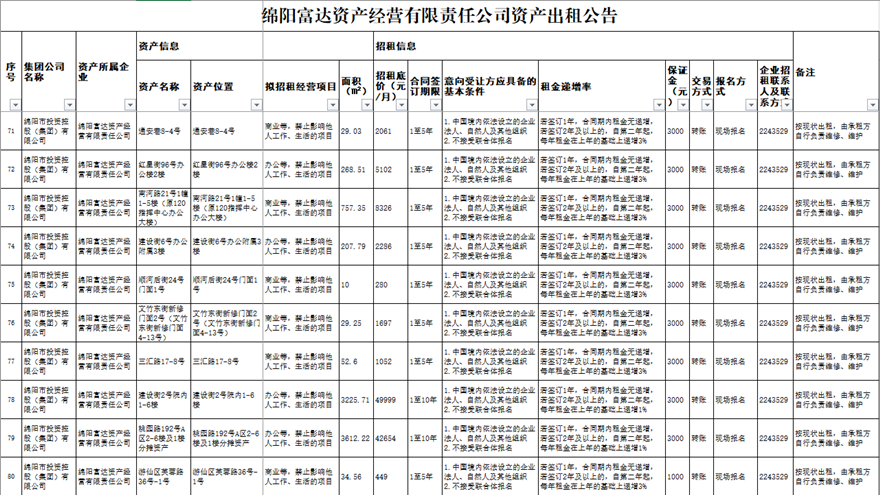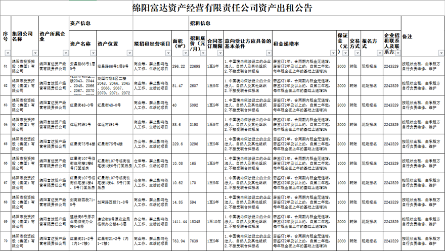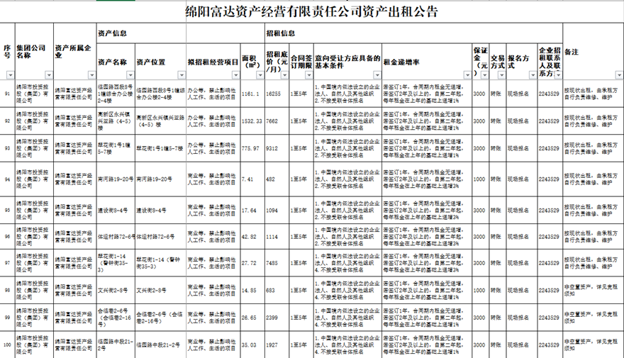 綿陽富達(dá)資產(chǎn)經(jīng)營有限責(zé)任公司資產(chǎn)出租公告
