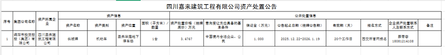 四川嘉來建工工程有限公司資產(chǎn)處置公告
