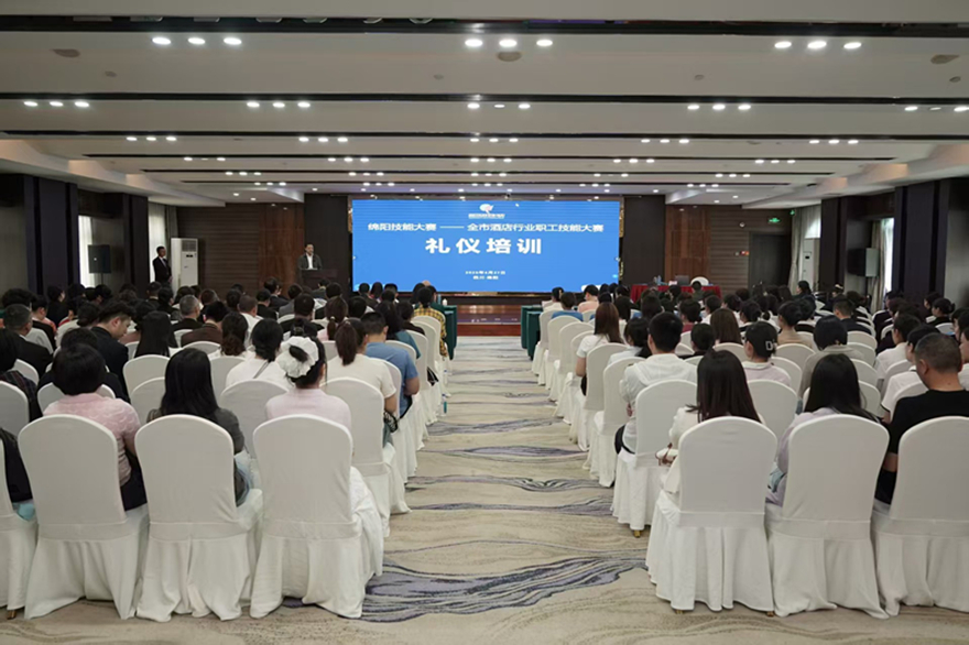 為備戰(zhàn)全市酒店行業(yè)職工技能大賽,提升職工職業(yè)素養(yǎng)與服務(wù)效能,4月27日,綿投集團(tuán)工會(huì)在東津酒店開(kāi)展職工禮儀培訓(xùn)。來(lái)自集團(tuán)所屬24家公司工會(huì)超150名職工代表參加培訓(xùn)。