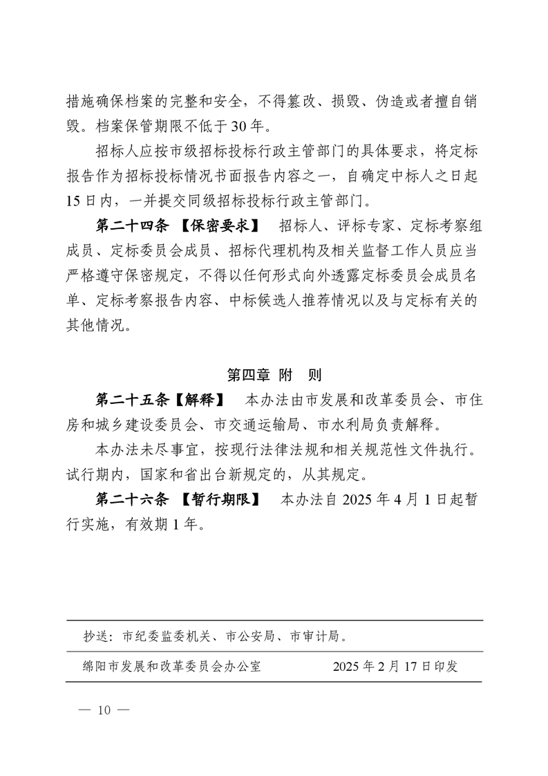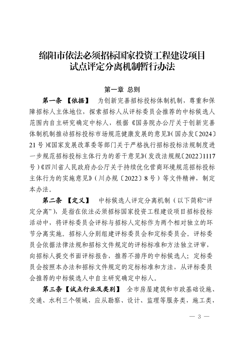 綿陽市依法必須招標(biāo)國家投資工程建設(shè)項目試點評定分離機制暫行辦法(2025.2.28發(fā)布)
